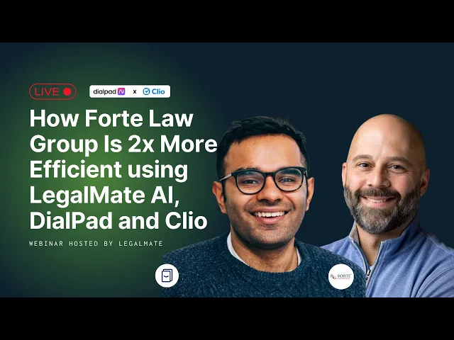 "LegalMate’s Dialpad integration automatically logs every call in Clio, giving us clear visibility into what our entire team is doing. Verifying details after calls is fast and simple, and everyone stays aligned on what was said. It also creates a time entry for us and our team can easily verify that too."